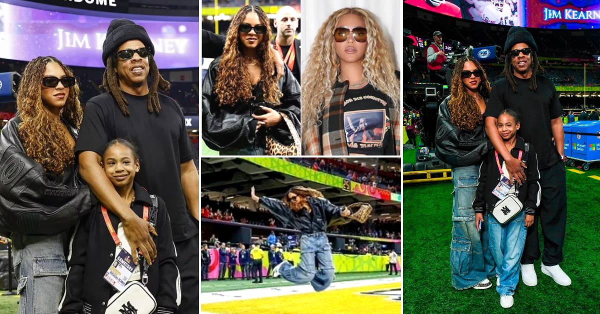 55-годишниот рапер го проследи финалето во американски фудбал со 7-годишната Руми и 13-годишната Блу Ајви, за која многумина коментираат дека е копија на Бијонсе. Пораснатата девојка привлекуваше внимание во стајлинг со фармерки и кожна јакна, а ја пресоздаде и позата во која секоја година се фотографира на овој спортски настан.