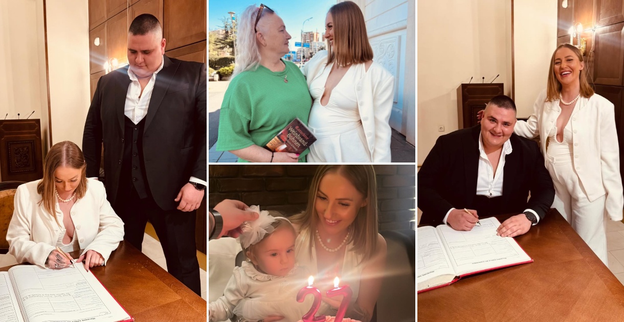 Токму на денот на нејзиниот 27-ми роденден, македонската бодибилдерка и тренерот по кик-бокс се заколнаа на вечна љубов. Тие споделија фотографии од регистрацијата и од роденденската торта на Мери, која го истакна пораснатото трудничко стомаче во невестинско бела комбинација.