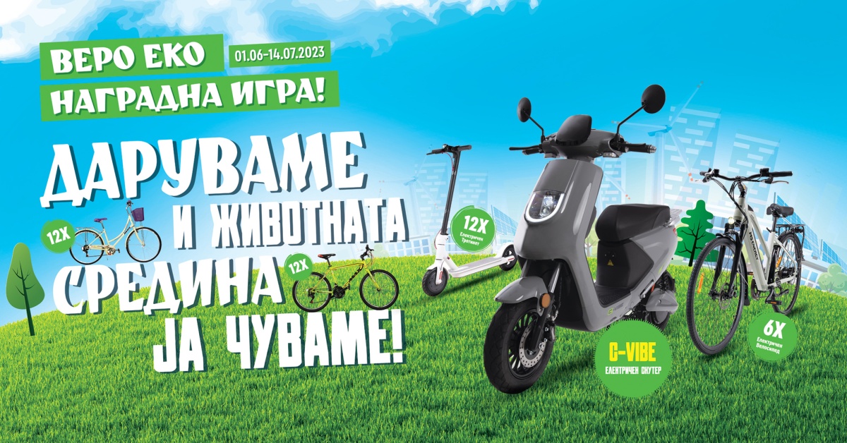 Во согласност со корпоративната политика на Веро за поттикнување активности кои придонесуваат за поздрава и почиста животна средина, на 1 јуни започна голема летна наградна игра „Даруваме и животната средина ја чуваме“ со богат фонд на еко награди. Главната награда која ќе заврши во рацете на најсреќниот потрошувач е електричен мотор C-VIBE.