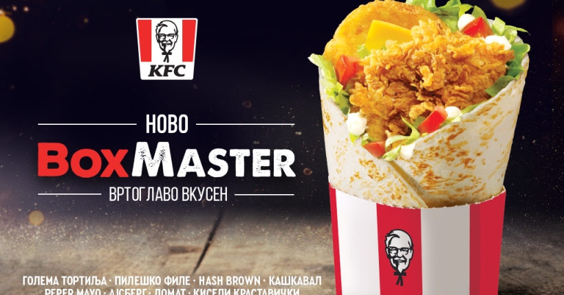 BoxMaster, еден од најпознатите и најпосакувани производи во портфолиото на KFC, од 03.09.2019 (вторник) е достапен во четирите ресторани на KFC во Македонија, од кои три се наоѓаат во Скопје (City Mall, Ramstore Mall, Point Retail Park) и еден во Тетово (Palma Mall).