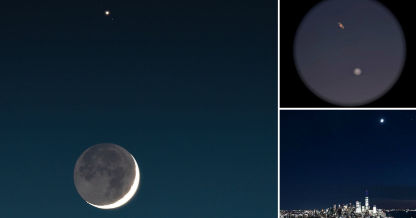 Фотографии од целиот свет го покажуваат реткото „рандеву“ на Сатурн и Јупитер, а на дел од нив направени со помош на телескоп се гледаат и месечините на Јупитер и прстенот на Сатурн.