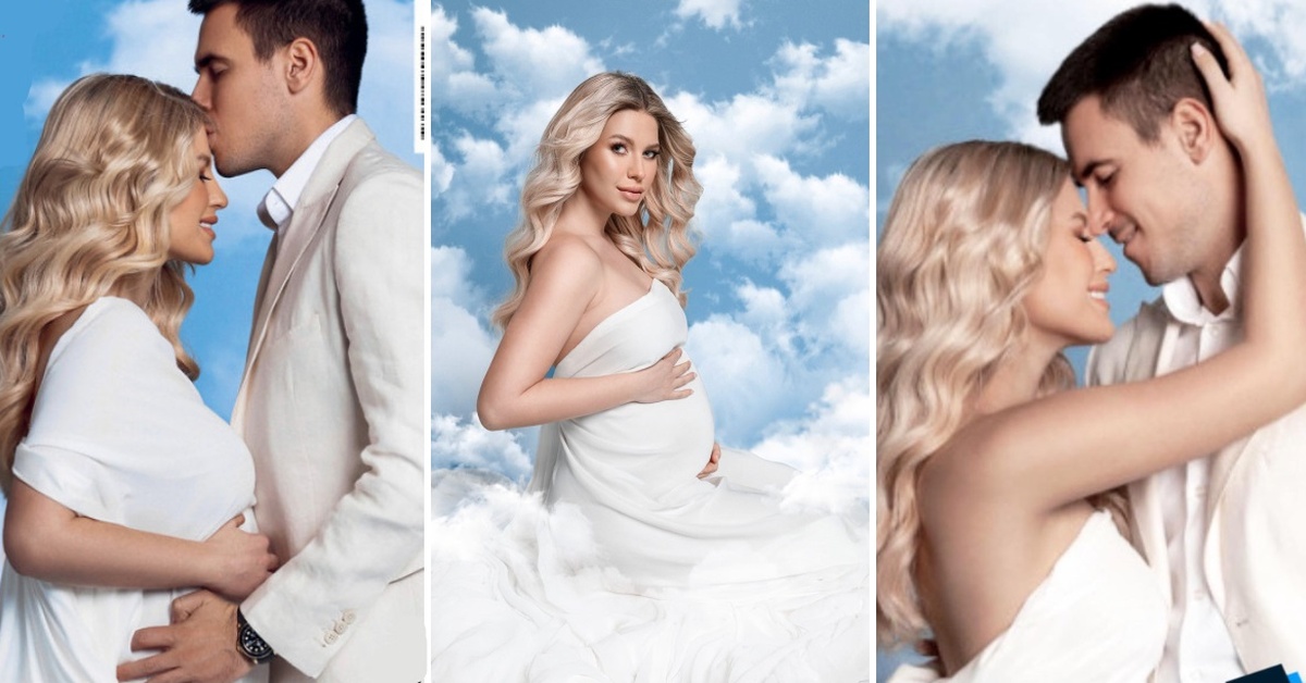 На една од нив, Сашка позира во бел фустан галејќи го трудничкото стомаче, а на останатите Ѓорѓе нежно ја бакнува.