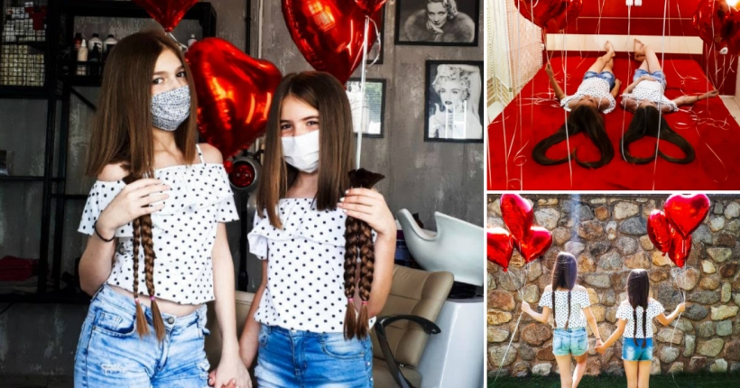 Миа Станоевска и Ива Балтовска се фотографираа со долгите коси пред да одат на фризер. 10-годишните девојчиња имале желба да ги скратат косите само ако ги донираат.