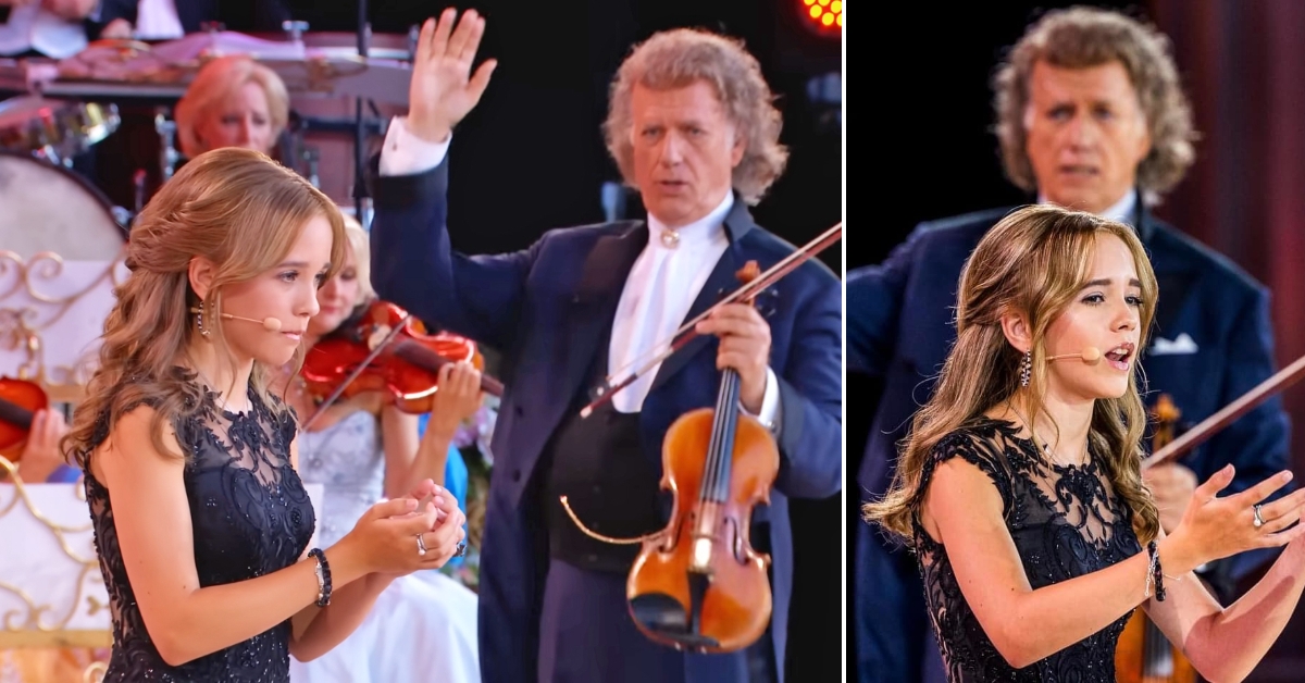 Андре Риу ја покани 15-годишната девојка на сцената на неговиот концерт, а таа ги одушеви сите присутни со изведбата на „Voilà“ од Барбара Прави.