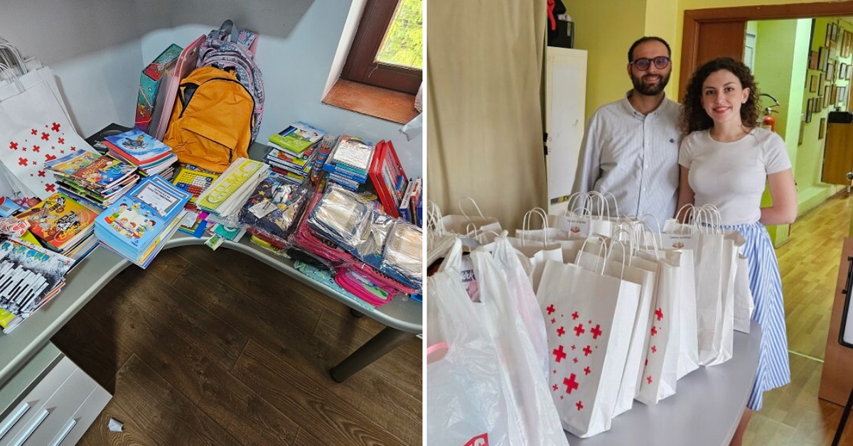 Веста за донацијата ја споделија од Општинската организација на Црвениот крст Гази Баба во Скопје, каде беа донирани околу 30 комплети со школски прибор.