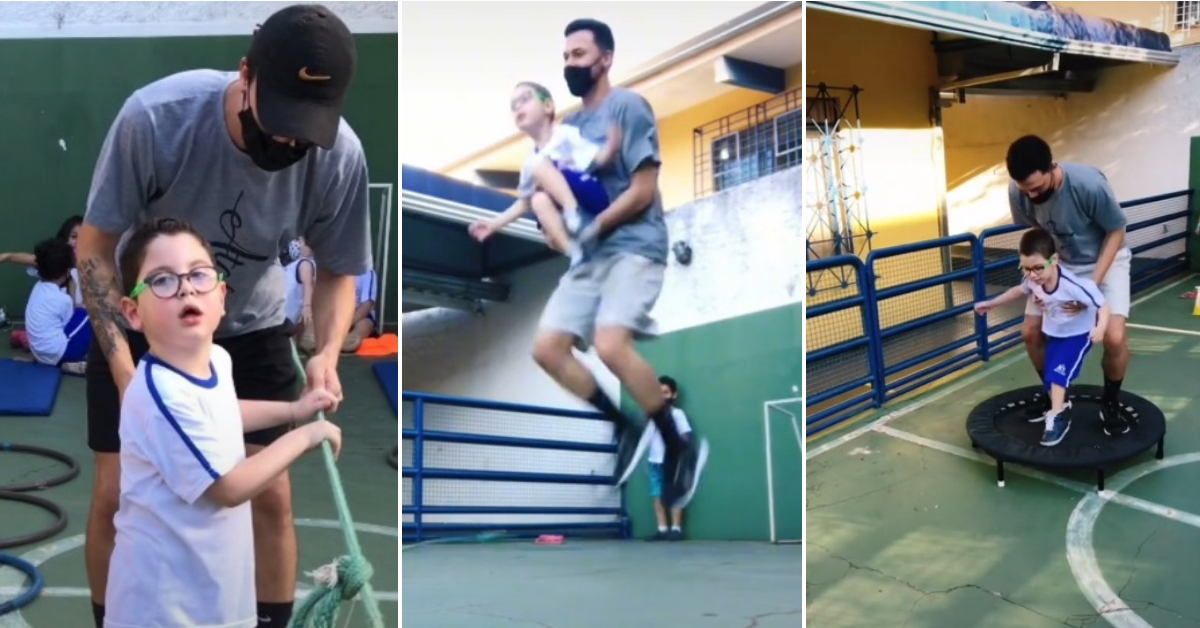 Посветениот маж од Бразил дава сè од себе за да се увери дека неговиот ученик Хеитор, кој е со посебни потреби, ужива во часот по физичко образование како и сите останати деца.