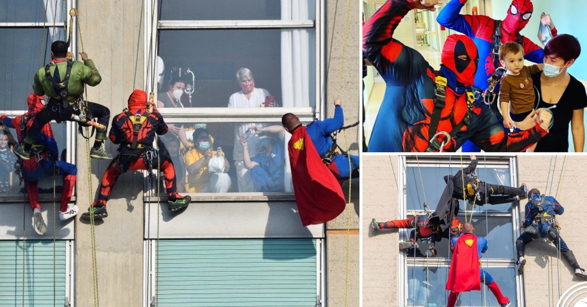 За да им го разубават барем малку престојот во здравствената установа, акробати маскирани како суперхерои се спуштија по ѕидовите на одделот за педијатрија во болницата „Сан Паоло“ во Милано.