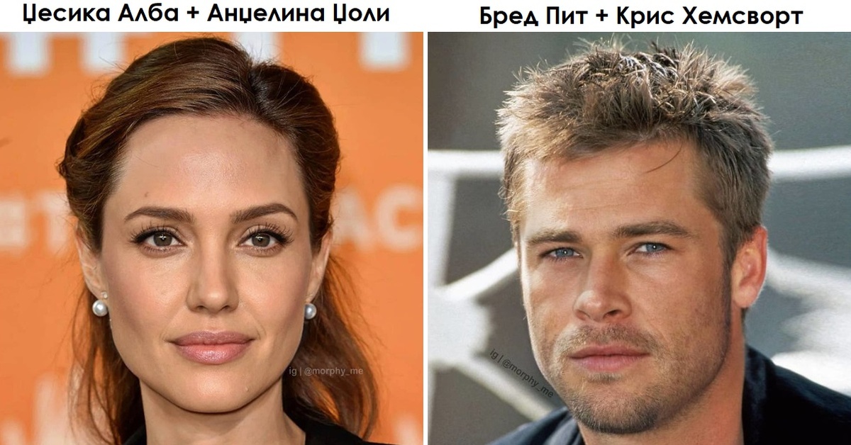 Бред Пит и Крис Хемсворт, Џесика Алба и Анџелина Џоли: Артист создава нереални лица „спојувајќи“ славни личности