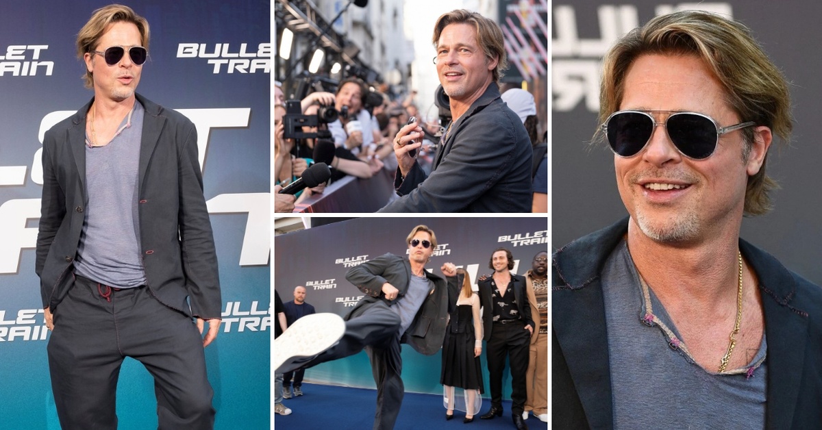 Заедно со колегите Џои Кинг, Арон Тејлор-Џонсон и Брајан Хенри, Пит се забавуваше пред објективите на фоторепортерите и уште еднаш покажа дека неговата привлечност не се намалила со текот на годините.