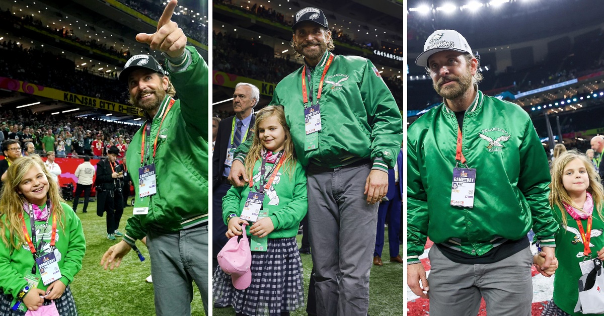 50-годишниот актер и режисер навиваше за Филаделфија Иглс облечен во зелена јакна со нивното лого. Тој беше придружуван од ќеркичката Леа де Сејн, која исто така носеше блуза во зелена боја.