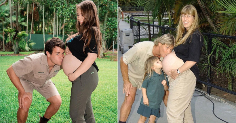 На старата фотографија, нејзината мајка Тери позира со пораснато трудничко стомаче додека го носи второто дете. Бинди и Стив ѝ го бакнуваат стомакот.