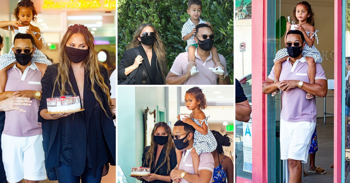 Криси Тиген и Џон Леџенд ги почестија нивните две мали деца со сладолед за време на семејна прошетка во Вест Холивуд.