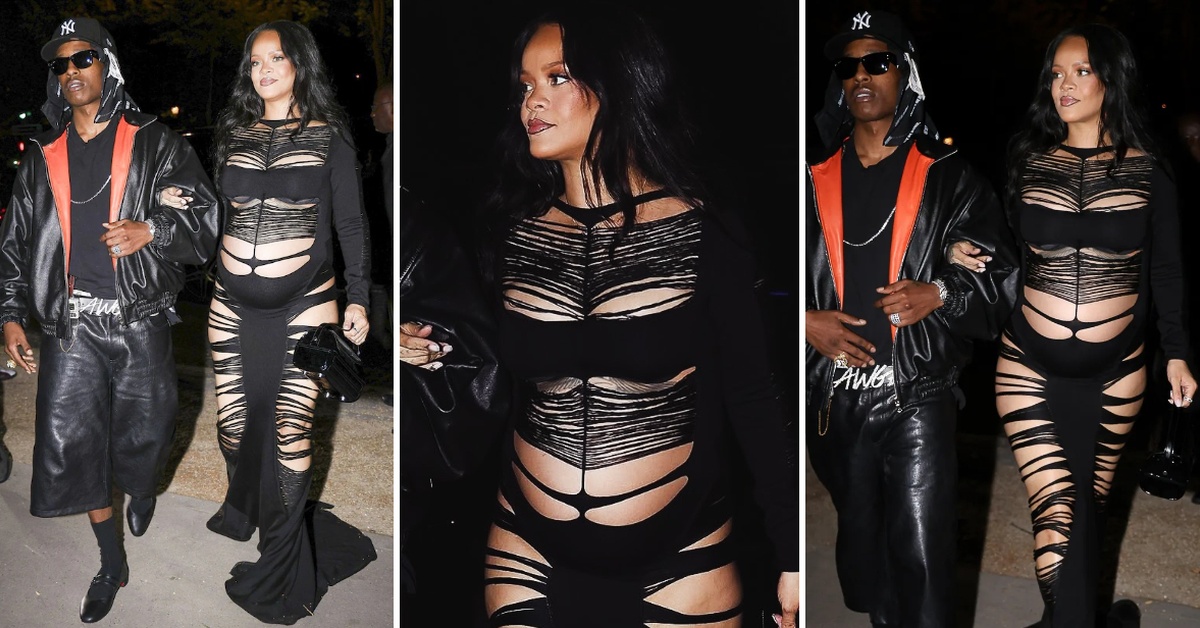 На модното шоу, Ријана го истакна трудничкото стомаче во креација од дизајнерот Рик Овенс. Музичката ѕвезда го придружуваше својот партнер Ејсап Роки.