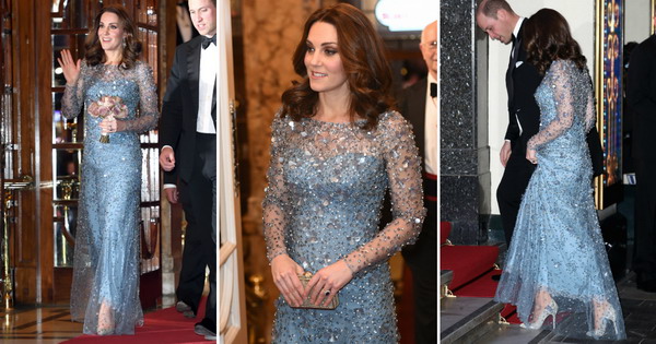 Атрактивната припадничка на британското кралско семејство, која е во блажена состојба, носеше гламурозна светлосина креација од нејзината омилена дизајнерка Џени Пекам. По објавувањето на фотографиите од настанот, многумина споделија дека стајлингот ги потсетува на кралицата Елза од дизниевиот хит „Frozen“.