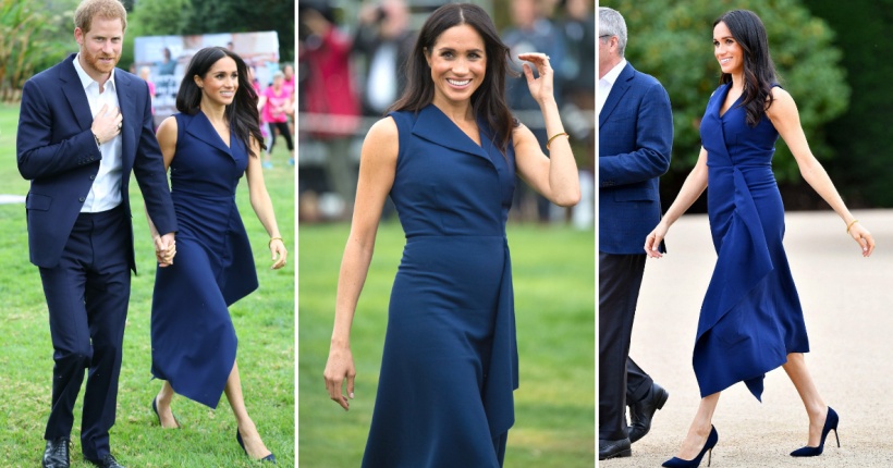 Меган Маркл продолжува да одушевува со својот стил за време на официјалната турнеја со принцот Хари низ Австралија. За посетата на Мелбурн, 37-годишната војвотка, која е бремена со првото дете, избра сина креација од австралискиот дизајнер Дион Ли.