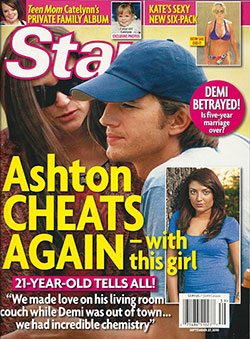 Американското списание Star објави вест дека Ештон Кучер ја изневерил својата сопруга Деми Мур со 21-годишна бринета.