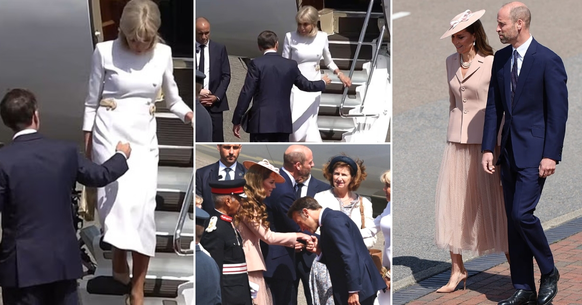 Претседателот и првата дама на Франција беа пречекани од принцот Вилијам и принцезата Кетрин. Емануел џентлменски ѝ ја бакна раката на Кетрин.