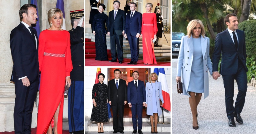 За оваа пригода, Брижит избра сина комбинација од фустан и палто, кои ги надополни со впечатлива чанта од нејзиниот омилен бренд Луј Витон, додека Првата дама на Кина се појави во црно-бел фустан.