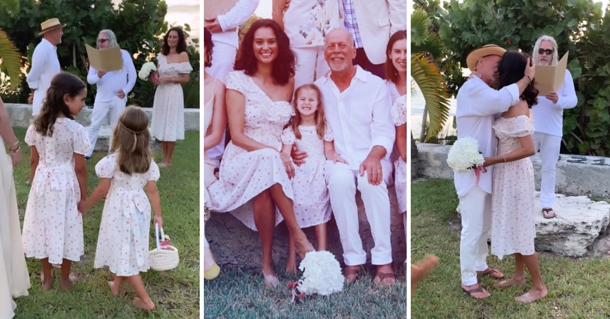 68-годишниот актер, на кого неодамна му беше дијагностицирана деменција, и неговата 44-годишна сопруга повторно се заколнаа на вечна љубов, а сведоци им беа нивните мали ќеркички Мејбел и Евелин.