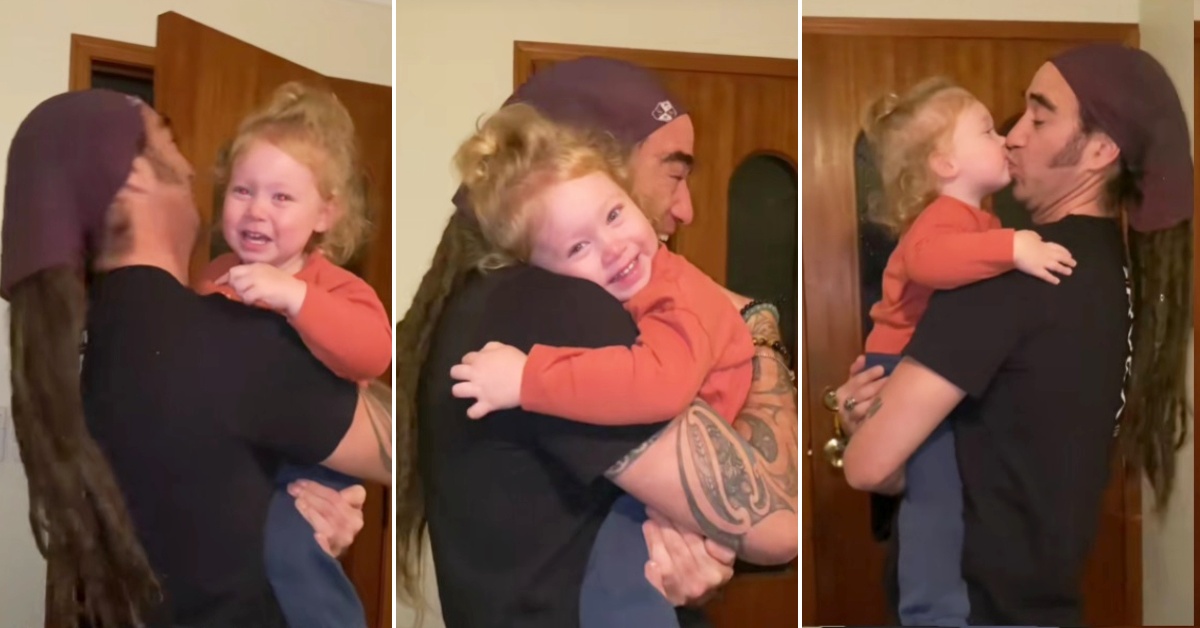 Во видеото, кое стана вирален хит на социјалните мрежи, малата Аја истовремено се смее и плаче кога ќе го види татко си Џерод по 3-месечно отсуство поради работа.