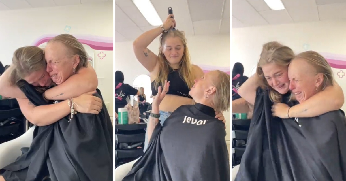 Во видеото објавено од фризерскиот салон, Софи се подготвува да ја избричи главата на мајка си Трејси, но веднаш ја пренасочува машинката кон својата глава.
