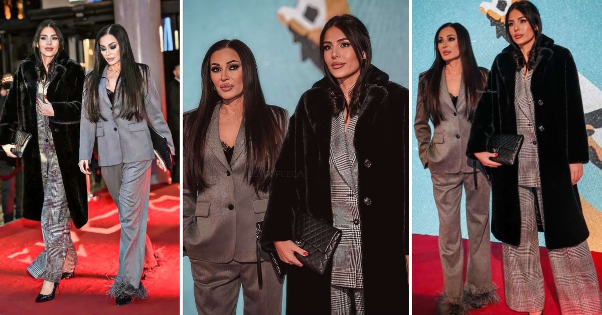 50-годишната пејачка носеше сив костум со пердуви на ногавиците, додека 25-годишната пејачка избра кариран костум, кој го искомбинира со црна бунда.