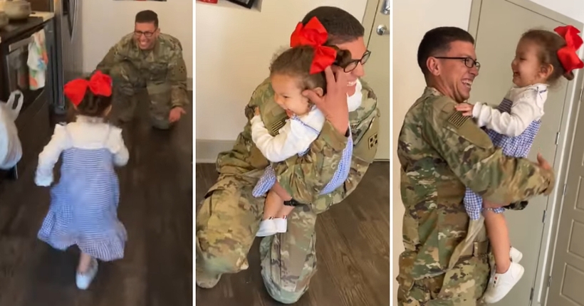 Детската радост е најискрена и „најзаразна“, за што е доказ и видеото со мало девојче кое не може да престане да се смее штом ќе го гушне татко си по негово долго отсуство.