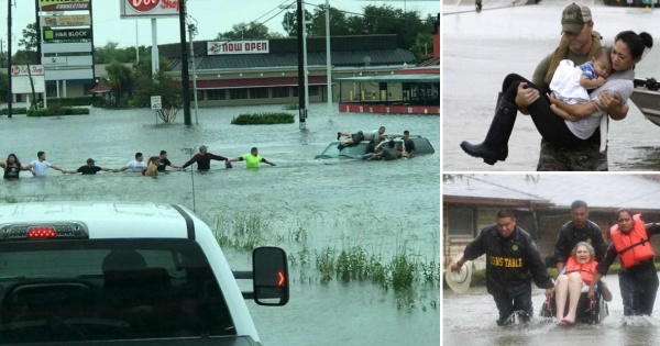Човечки синџир: Фотографија од добродушни луѓе кои спасуваат маж во поплавите во Тексас ќе ви ја врати вербата во човештвото