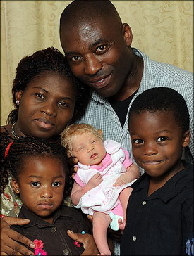 Британците Бен и Ангела, кои имаат потекло од Нигерија, останале вчудоневидени кога се родило нивното трето дете.