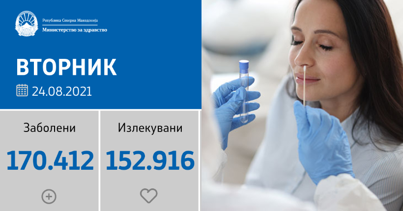 Вкупната бројка на КОВИД-дијагностицирани лица во нашата земја од почетокот на епидемијата изнесува 170.412, бројката на оздравени пациенти е 152.916, на починати е 5.727, а бројот на активни случаи изнесува 11.769.