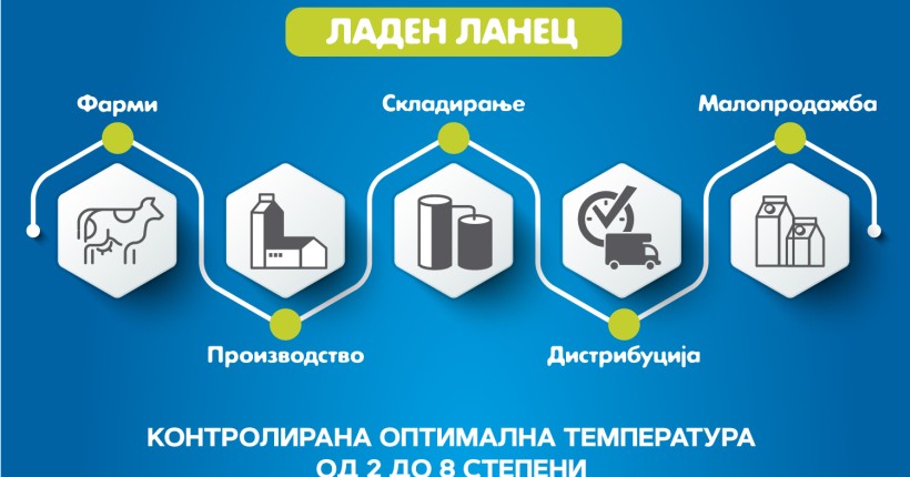 Така, во млечната индустрија, обезбедувањето висок квалитет на производите започнува уште од преземањето на сировото млеко од фармите, преку дистрибуцијата, па сè до нивното правилно складирање и чување во директните продажни места. Ова е особено важно за кисело-млечните производи, како што се јогуртот, киселото млеко, павлаката и други производи од овој тип, кои се температурно осетливи и за кои е задолжително, во целиот процес на производството, дистрибуцијата, продажбата, па сè до крајното сместување во фрижидер во домаќинствата, да бидат чувани во специфични услови. Токму овој процес се нарекува ладен ланец, а контролирана оптимална температура на целиот ланец е од 2 до 8 степени.