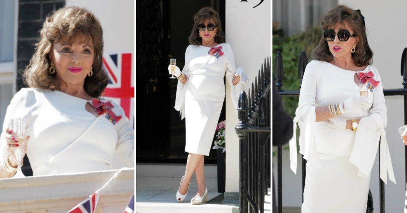 Џоан Колинс е синоним за елеганција и дамски изглед. 86-годишната актерка, позната по улогата на Алексис во серијата „Династија“, одушеви со својата појава на прославите по повод годишнината од крајот на Втората светска војна.