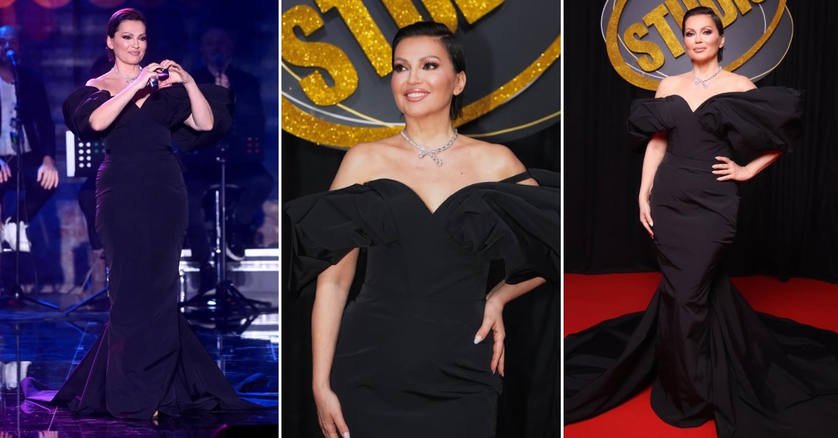 За настанот, 52-годишната музичарка избра црна креација со отворено деколте и волуменозни ракави во која изгледаше како холивудска дива. Својот изглед, Нина го надополни со накит од Сваровски.