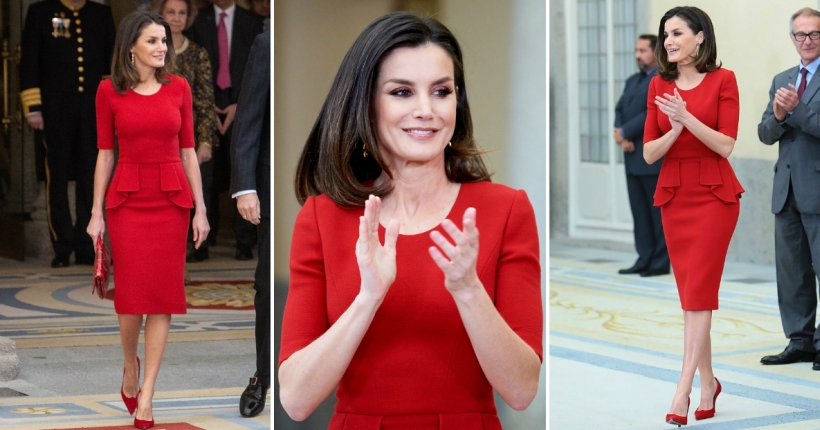 46-годишната кралица изгледаше модерно во црвена креација со пеплум од Каролина Ерера.