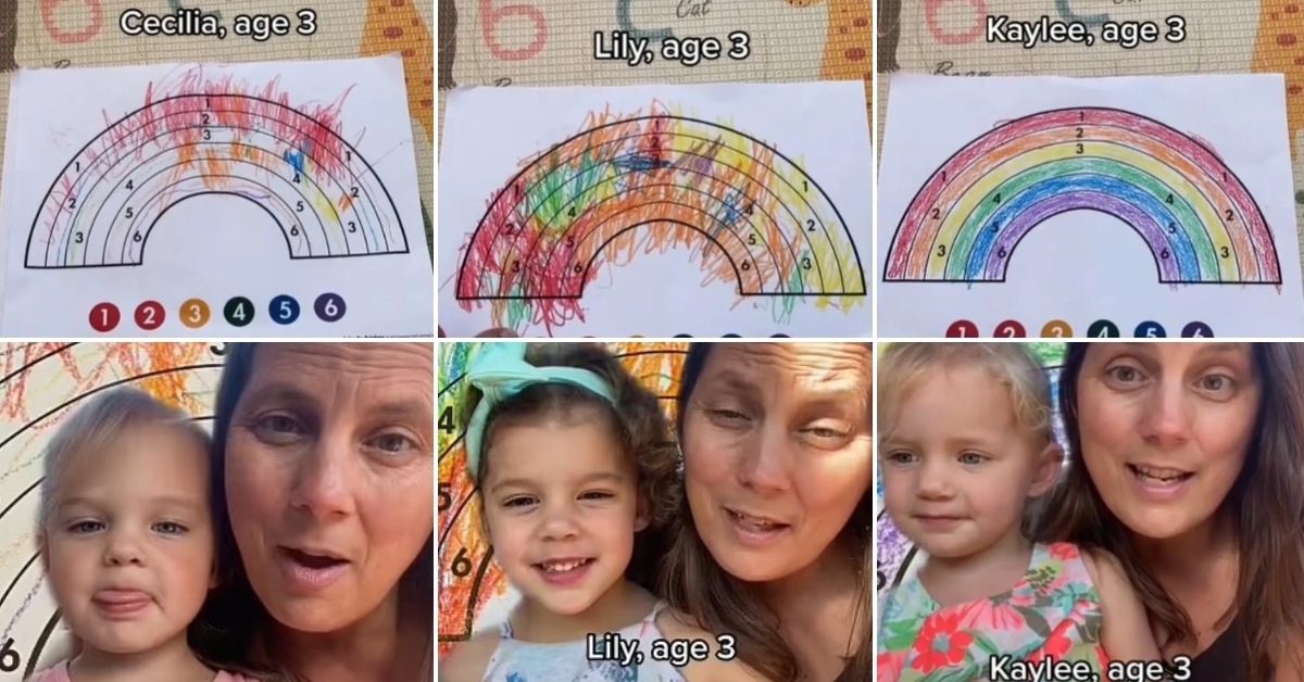 Џена Нокс на TikTok ги сподели цртежите на трите 3-годишни ќеркички во видео кое покажува колку се разликуваат нивните способности за боење. Сите три девојчиња требало да обојат исто виножито, но крајниот резултат е сосема различен.