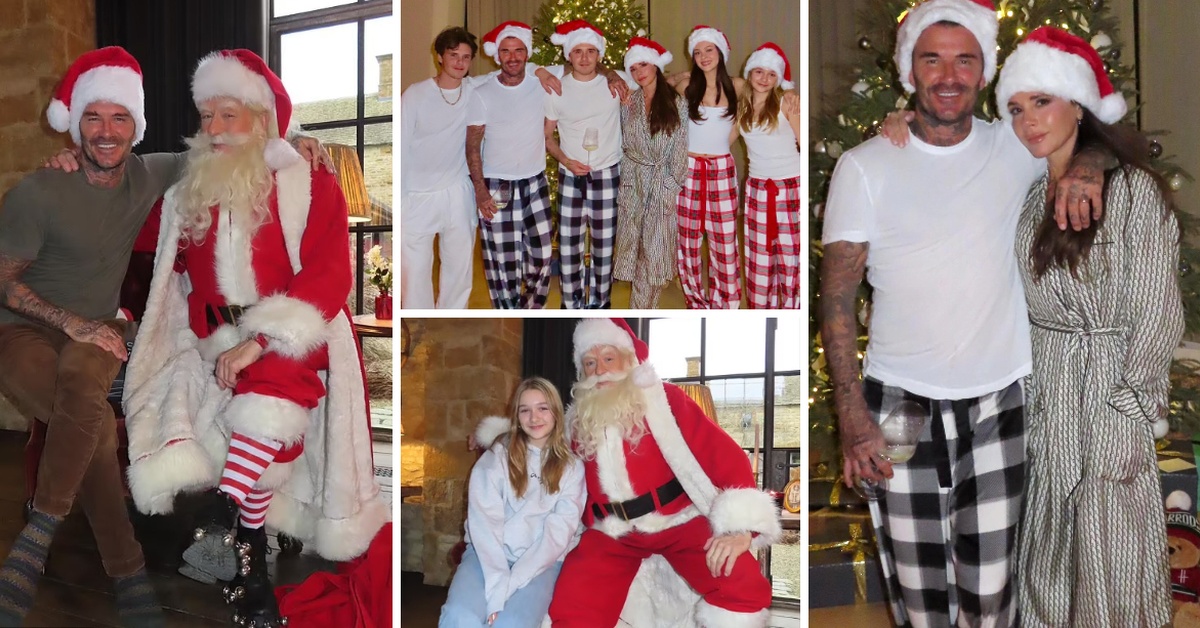 Викторија, Дејвид и нивните четири деца беа посетени од Дедо Мраз и позираа со него во топла празнична атмосфера. Славниот пар сподели фотографии на Instagram со ќерката Харпер, синовите Бруклин, Ромео и Круз и снаата Никола.