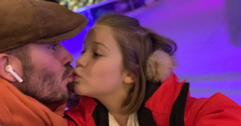 Дејвид Бекам привлече спротивставени коментари затоа што ја бакнува ќеркичката Харпер во уста