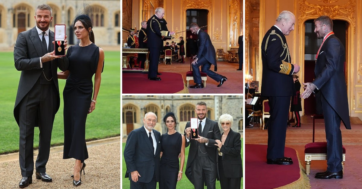 На церемонијата во замокот Виндзор, 49-годишниот поранешен фудбалер и хуманитарец пристигна придружуван од сопругата Викторија и неговите родители, Тед и Сандра. За овој посебен момент, тој носеше елегантно одело дизајнирано токму од Викторија, која за првпат специјално изработи облека за својот сопруг.