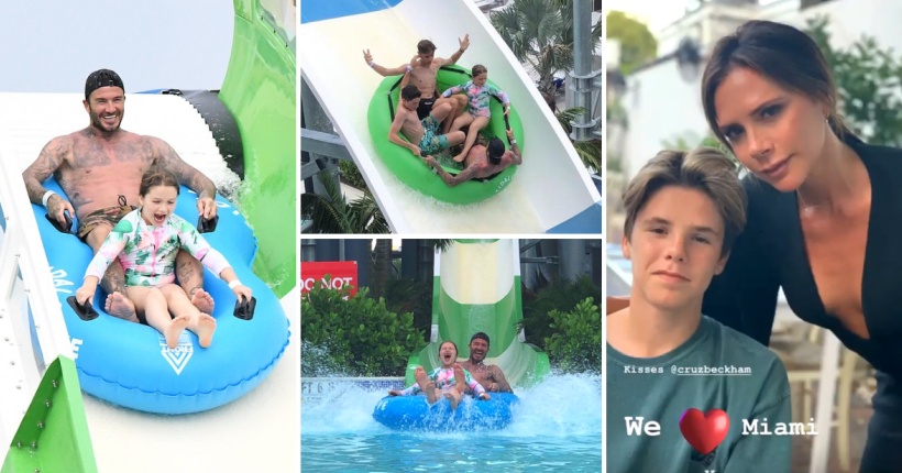 Семејството Бекам отпатува во Мајами. Дејвид Бекам со три од своите деца беше фотографиран додека се забавуваше во воден парк.