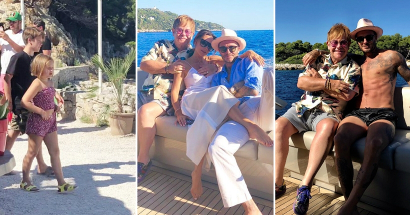 43-годишниот поранешен фудбалер и 44-годишната дизајнерка заедно со децата Бруклин, Ромео, Круз и Харпер се релаксираа на француската ривиера со 71-годишниот пејач, неговиот сопруг Дејвид Фурниш и нивните две деца.