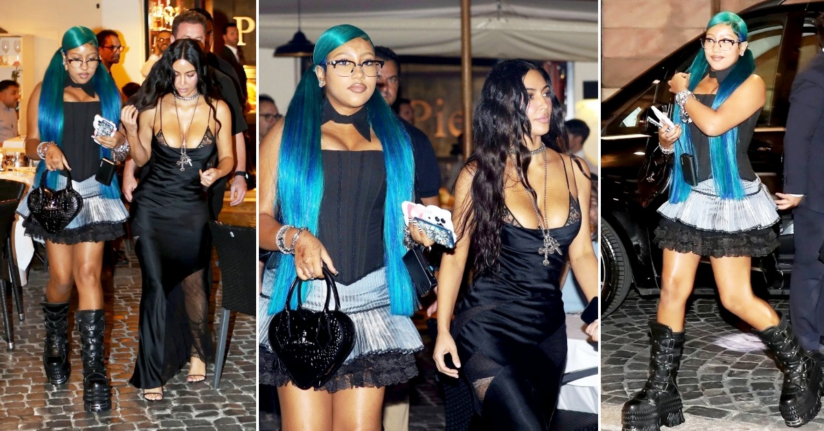 44-годишната риалити ѕвезда предизвика лавина коментари откако беше фотографирана со Норт Вест на семеен одмор во Рим. Норт носеше смела комбинација, која вклучуваше црн корсет, мини здолниште со чипка и чизми на висока платформа.