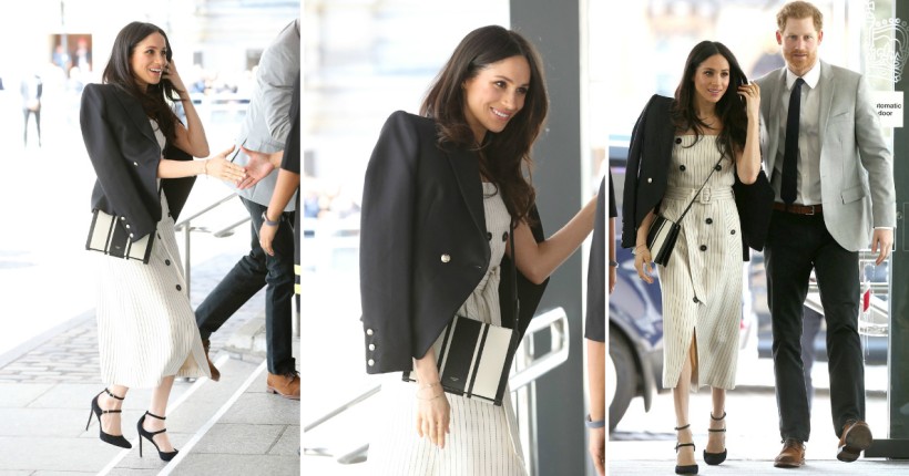Парот шармираше со деловни шик комбинации. Меган носеше фустан со тенки риги од Altuzarra и црно сако од Camilla and Marc.