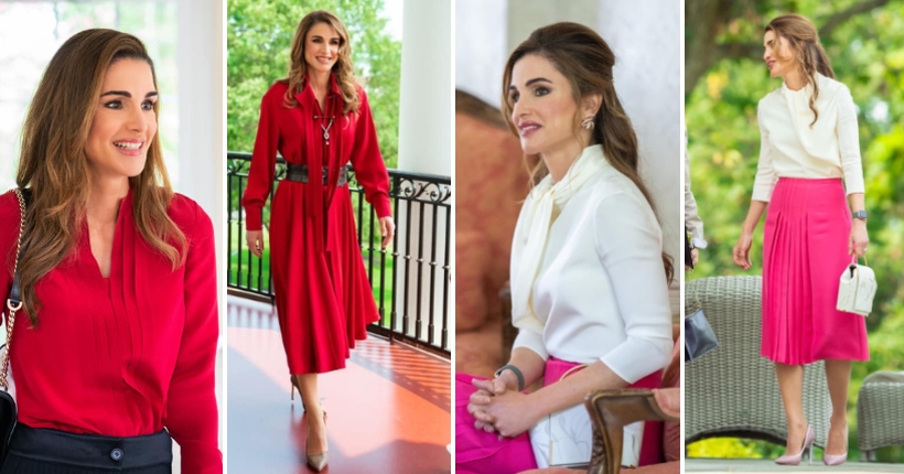 50-годишната Кралица на Јордан отпатува во САД заедно со кралот Абдула II и принцот Хусеин, а на сите работни состаноци носеше прикладни и елегантни комбинации.