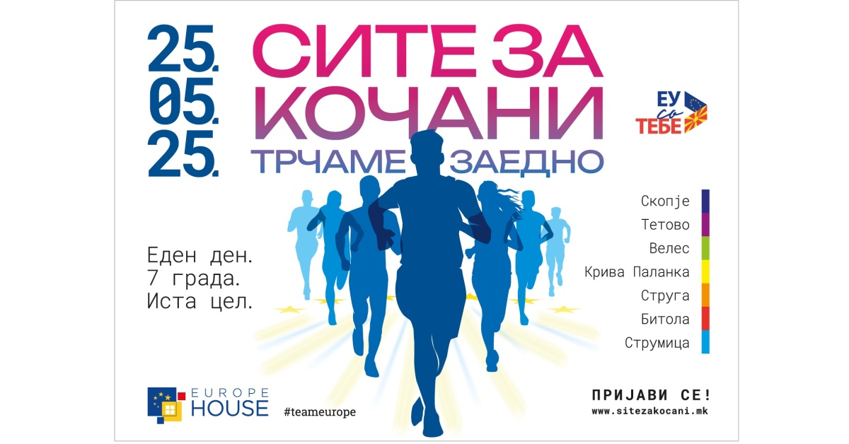 Оваа година, Делегацијата на Европската Унија и мрежата на Јуропхаус ќе го одбележат „Денот на Европа“ со организирање на хуманитарна трка за погодените од трагедијата во Кочани.