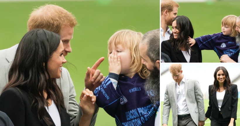 Детенце ја погали војвотката Меган на косата, погледнете ја слатката реакција кога принцот Хари ќе го „искара“