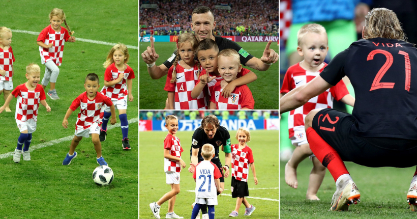 Дечињата на хрватските фудбалери слегоа на теренот на стадионот „Лужники“ во Москва по завршувањето на натпреварот меѓу Хрватска и Англија.