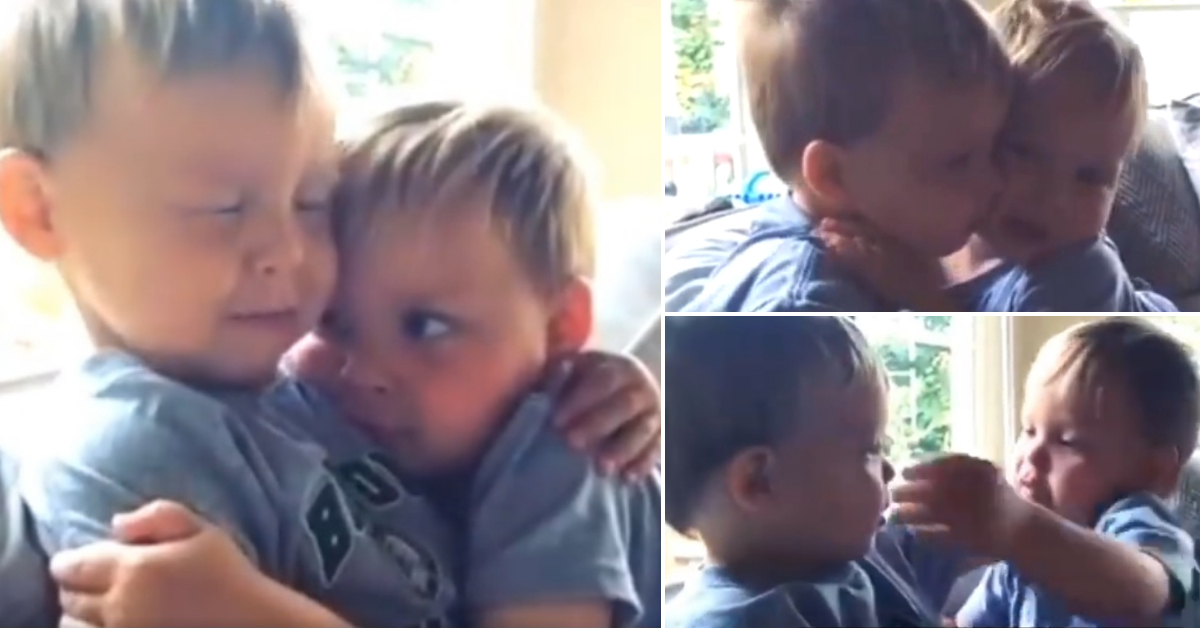 Во видеото, 3-годишните близнаци се гушкаат и смируваат откако Вајат фрлил со играчка камион по Флин.
