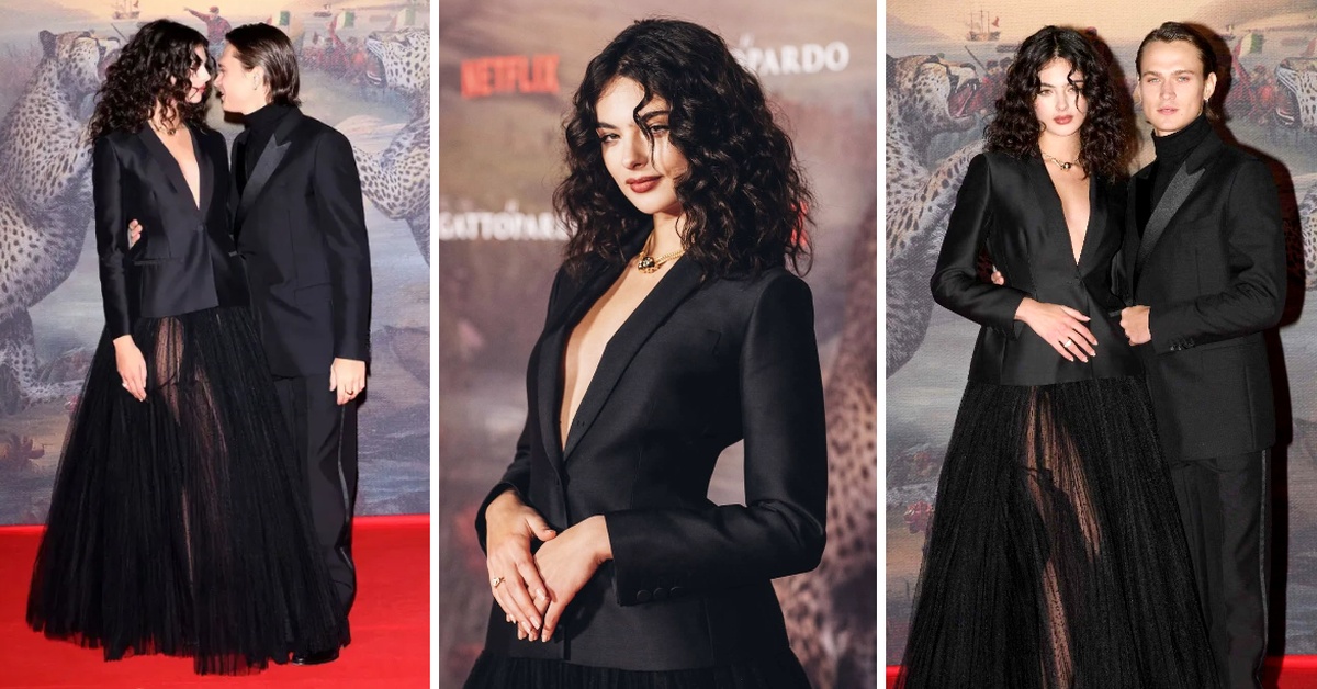 На премиерата во Рим, 20-годишната девојка зрачеше со модерна елеганција во црна креација од Диор, која е комбинација на здолниште со тул и сако.