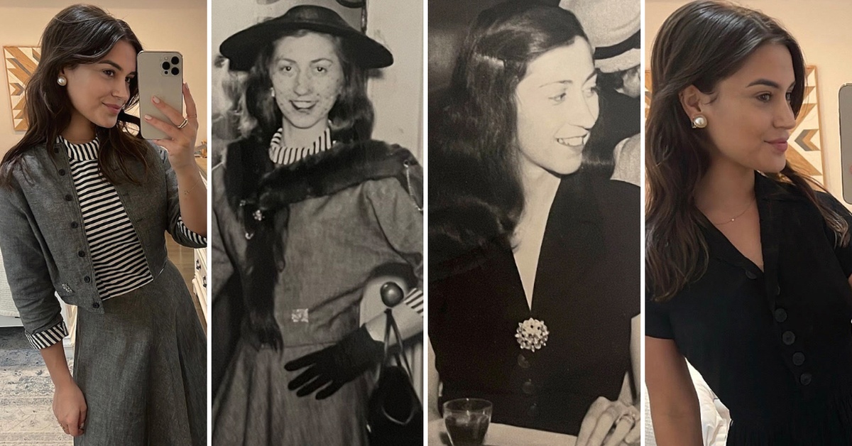 27-годишната девојка отвори куфер со стари алишта и ги облекуваше фустаните, кошулите и комплетите во кои баба ѝ Мери се дотерувала за излегувањата со дедо ѝ.