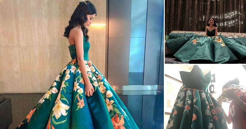 Сиара Џен самата го дизајнирала фустанот, а потоа со 12 метри материјал и многу труд, креирала модно ремек-дело.
